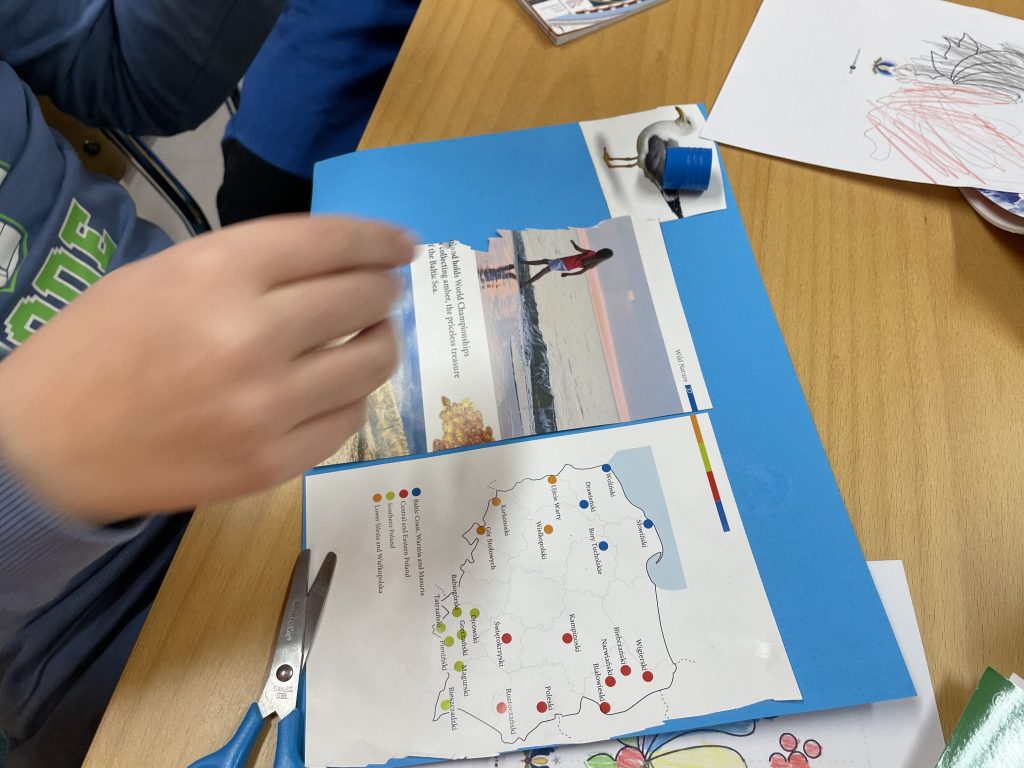 Zajęcia zakończyły się częścią plastyczną – dzieci stworzyły kreatywne plakaty przedstawiające Polskę północną.