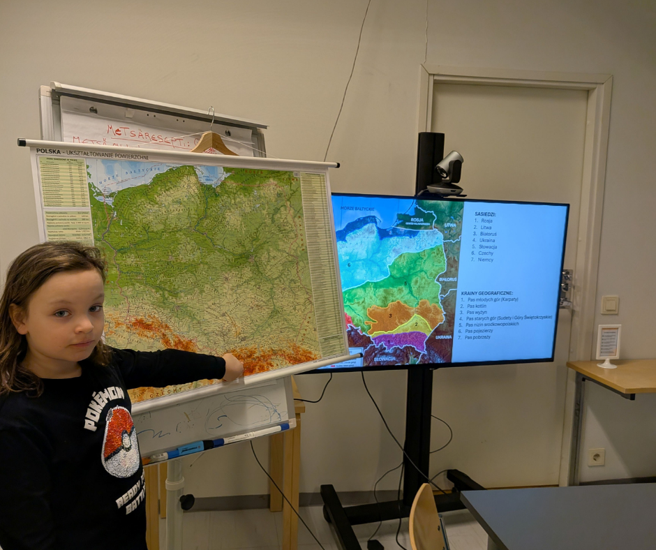 Podczas pierwszych warsztatów uczestnicy rozpoczęli swoją podróż od poznania podstawowych informacji o Polsce. Dzieci dowiedziały się, z jakimi krajami graniczy Polska, jakie są jej główne krainy geograficzne, gdzie znajduje się najwyższy szczyt oraz najniżej położony punkt, a także jakie są skrajne punkty kraju.