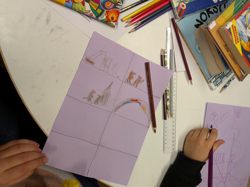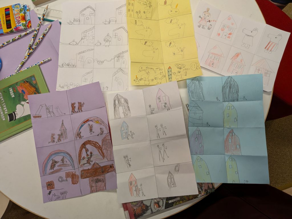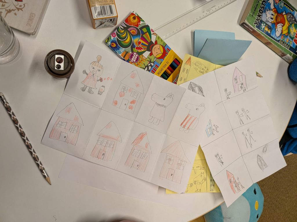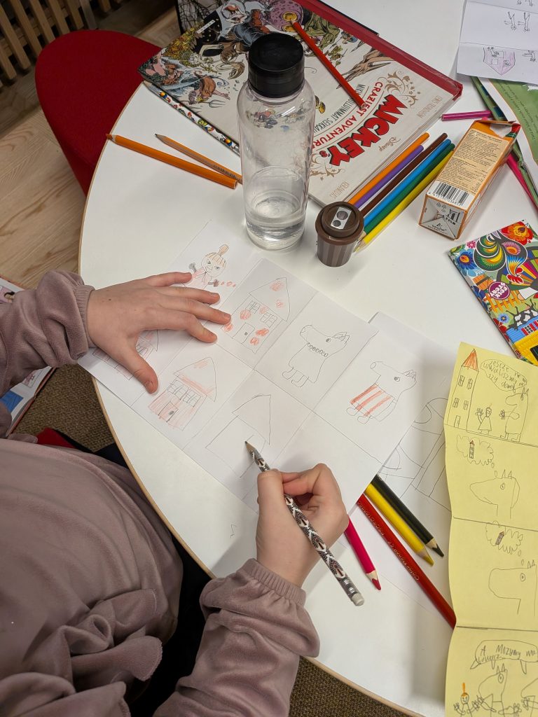 Pencils, crayons and paper quickly went into action, and the children came up with truly wonderful ideas for new Moomin adventures. With the warm support of their caregivers, unique and imaginative stories were created – each one different and special.